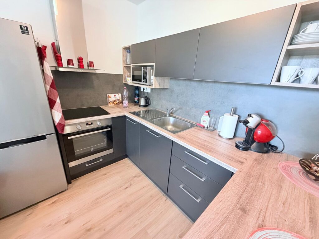 Byt má predzáhradku o výmere 32m2, kde môžete zažiť nový rozmer svojho bývanie. Úžitková plocha bytu je 43m2, v byte je podlahové vykurovanie, klimatizácia, vnútorné žaluzie, sieťky, na terase je výsuvná markíza. K bytu je pivničná kobka a parkovacie státie.
